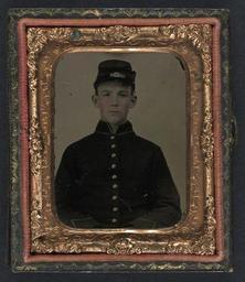 Keywords: library of congress libraryofcongress dc:identifier=http://hdl.loc.gov/loc.pnp/ppmsca.27353 dc:identifier=httphdllocgovlocpnpppmsca27353 xmlns:dc=http://purl.org/dc/elements/1.1/ xmlns:dc=httppurlorgdcelements11 u.s. civil war uscivilwar american civil war americancivilwar the civil war thecivilwar civil war civilwar war between the states warbetweenthestates united states of america unitedstatesofamerica u.s.a. usa the union theunion union the north thenorth yankee yankees soldier picture frame people photo border [Unidentified young soldier in Union shell jacket and forage cap] [between 1861 and 1865] 1 photograph : ninth-plate ambrotype, hand-colored ; 7.3 x 6.2 cm (case) Notes: Title devised by Library staff. Case: Rinhart, no. 54. Gift; Tom Liljenquist; 2010; (DLC/PP-2010:105). Subjects: United States.--Army--People--1860-1870. Soldiers--Union--1860-1870. Military uniforms--Union--1860-1870. United States--History--Civil War, 1861-1865--Military personnel--Union. Format: Portrait photographs--1860-1870. Ambrotypes--Hand-colored--1860-1870. Rights Info: No known restrictions on publication. Repository: Library of Congress, Prints and Photographs Division, Washington, D.C. 20540 USA, hdl.loc.gov/loc.pnp/pp.print Part Of: Ambrotype/Tintype filing series (Library of Congress) (DLC) 2010650518 Liljenquist Family collection (Library of Congress) (DLC) 2010650519 More information about this collection is available at hdl.loc.gov/loc.pnp/pp.lilj Persistent URL: hdl.loc.gov/loc.pnp/ppmsca.27353 Call Number: AMB/TIN no. 2488 [Unidentified young soldier in Union shell jacket and forage cap] [between 1861 and 1865] 1 photograph : ninth-plate ambrotype, hand-colored ; 7.3 x 6.2 cm (case) Notes: Title devised by Library staff. Case: Rinhart, no. 54. Gift; Tom Liljenquist; 2010; (DLC/PP-2010:105). Subjects: United States.--Army--People--1860-1870. Soldiers--Union--1860-1870. Military uniforms--Union--1860-1870. United States--History--Civil War, 1861-1865--Military personnel--Union. Format: Portrait photographs--1860-1870. Ambrotypes--Hand-colored--1860-1870. Rights Info: No known restrictions on publication. Repository: Library of Congress, Prints and Photographs Division, Washington, D.C. 20540 USA, hdl.loc.gov/loc.pnp/pp.print Part Of: Ambrotype/Tintype filing series (Library of Congress) (DLC) 2010650518 Liljenquist Family collection (Library of Congress) (DLC) 2010650519 More information about this collection is available at hdl.loc.gov/loc.pnp/pp.lilj Persistent URL: hdl.loc.gov/loc.pnp/ppmsca.27353 Call Number: AMB/TIN no. 2488 |