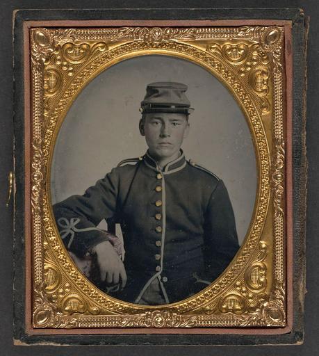 Keywords: library of congress libraryofcongress dc:identifier=http://hdl.loc.gov/loc.pnp/ppmsca.26900 dc:identifier=httphdllocgovlocpnpppmsca26900 xmlns:dc=http://purl.org/dc/elements/1.1/ xmlns:dc=httppurlorgdcelements11 u.s. civil war uscivilwar american civil war americancivilwar the civil war thecivilwar civil war civilwar war between the states warbetweenthestates united states of america unitedstatesofamerica u.s.a. usa the union theunion union the north thenorth yankee yankees soldier zouaves zouave union zouave unionzouave new york zouaves newyorkzouaves soldiersnpm people picture frame photo border [Unidentified young soldier in New York Zouave uniform] [between 1861 and 1865] 1 photograph : sixth-plate ambrotype, hand-colored ; 9.1 x 8.4 cm (case) Notes: Title devised by Library staff. Case: Leather geometric scroll and flower motif. Gift; Tom Liljenquist; 2010; (DLC/PP-2010:105). Subjects: United States.--Army--People--1860-1870. Soldiers--Union--1860-1870. Military uniforms--Union--1860-1870. Zouaves--1860-1870. Youth--1860-1870. United States--History--Civil War, 1861-1865--Military personnel--Union. Format: Portrait photographs--1860-1870. Ambrotypes--Hand-colored--1860-1870. Rights Info: No known restrictions on publication. Repository: Library of Congress, Prints and Photographs Division, Washington, D.C. 20540 USA, hdl.loc.gov/loc.pnp/pp.print Part Of: Ambrotype/Tintype filing series (Library of Congress) (DLC) 2010650518 Liljenquist Family collection (Library of Congress) (DLC) 2010650519 More information about this collection is available at hdl.loc.gov/loc.pnp/pp.lilj Persistent URL: hdl.loc.gov/loc.pnp/ppmsca.26900 Call Number: AMB/TIN no. 2047 [Unidentified young soldier in New York Zouave uniform] [between 1861 and 1865] 1 photograph : sixth-plate ambrotype, hand-colored ; 9.1 x 8.4 cm (case) Notes: Title devised by Library staff. Case: Leather geometric scroll and flower motif. Gift; Tom Liljenquist; 2010; (DLC/PP-2010:105). Subjects: United States.--Army--People--1860-1870. Soldiers--Union--1860-1870. Military uniforms--Union--1860-1870. Zouaves--1860-1870. Youth--1860-1870. United States--History--Civil War, 1861-1865--Military personnel--Union. Format: Portrait photographs--1860-1870. Ambrotypes--Hand-colored--1860-1870. Rights Info: No known restrictions on publication. Repository: Library of Congress, Prints and Photographs Division, Washington, D.C. 20540 USA, hdl.loc.gov/loc.pnp/pp.print Part Of: Ambrotype/Tintype filing series (Library of Congress) (DLC) 2010650518 Liljenquist Family collection (Library of Congress) (DLC) 2010650519 More information about this collection is available at hdl.loc.gov/loc.pnp/pp.lilj Persistent URL: hdl.loc.gov/loc.pnp/ppmsca.26900 Call Number: AMB/TIN no. 2047 |