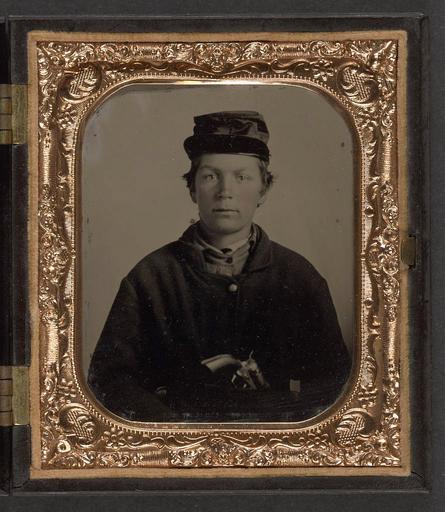 Keywords: library of congress libraryofcongress dc:identifier=http://hdl.loc.gov/loc.pnp/ppmsca.26901 dc:identifier=httphdllocgovlocpnpppmsca26901 xmlns:dc=http://purl.org/dc/elements/1.1/ xmlns:dc=httppurlorgdcelements11 u.s. civil war uscivilwar american civil war americancivilwar the civil war thecivilwar civil war civilwar war between the states warbetweenthestates united states of america unitedstatesofamerica u.s.a. usa the union theunion union the north thenorth yankee yankees soldier pistol revolver gun picture frame people photo border [Unidentified young soldier in Union uniform and forage cap with revolver] [between 1861 and 1865] 1 photograph : sixth-plate tintype, hand-colored ; 9.5 x 8.5 cm (case) Notes: Title devised by Library staff. Case: Berg, no. 3-110. Gift; Tom Liljenquist; 2010; (DLC/PP-2010:105). Subjects: United States.--Army--People--1860-1870. Soldiers--Union--1860-1870. Military uniforms--Union--1860-1870. Youth--1860-1870. Handguns--1860-1870. United States--History--Civil War, 1861-1865--Military personnel. Format: Portrait photographs--1860-1870. Tintypes--Hand-colored--1860-1870. Rights Info: No known restrictions on publication. Repository: Library of Congress, Prints and Photographs Division, Washington, D.C. 20540 USA, hdl.loc.gov/loc.pnp/pp.print Part Of: Ambrotype/Tintype filing series (Library of Congress) (DLC) 2010650518 Liljenquist Family collection (Library of Congress) (DLC) 2010650519 More information about this collection is available at hdl.loc.gov/loc.pnp/pp.lilj Persistent URL: hdl.loc.gov/loc.pnp/ppmsca.26901 Call Number: AMB/TIN no. 2048 [Unidentified young soldier in Union uniform and forage cap with revolver] [between 1861 and 1865] 1 photograph : sixth-plate tintype, hand-colored ; 9.5 x 8.5 cm (case) Notes: Title devised by Library staff. Case: Berg, no. 3-110. Gift; Tom Liljenquist; 2010; (DLC/PP-2010:105). Subjects: United States.--Army--People--1860-1870. Soldiers--Union--1860-1870. Military uniforms--Union--1860-1870. Youth--1860-1870. Handguns--1860-1870. United States--History--Civil War, 1861-1865--Military personnel. Format: Portrait photographs--1860-1870. Tintypes--Hand-colored--1860-1870. Rights Info: No known restrictions on publication. Repository: Library of Congress, Prints and Photographs Division, Washington, D.C. 20540 USA, hdl.loc.gov/loc.pnp/pp.print Part Of: Ambrotype/Tintype filing series (Library of Congress) (DLC) 2010650518 Liljenquist Family collection (Library of Congress) (DLC) 2010650519 More information about this collection is available at hdl.loc.gov/loc.pnp/pp.lilj Persistent URL: hdl.loc.gov/loc.pnp/ppmsca.26901 Call Number: AMB/TIN no. 2048 |