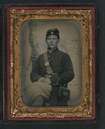 Keywords: library of congress libraryofcongress dc:identifier=http://hdl.loc.gov/loc.pnp/ppmsca.27145 dc:identifier=httphdllocgovlocpnpppmsca27145 xmlns:dc=http://purl.org/dc/elements/1.1/ xmlns:dc=httppurlorgdcelements11 u.s. civil war uscivilwar american civil war americancivilwar the civil war thecivilwar civil war civilwar war between the states warbetweenthestates united states of america unitedstatesofamerica u.s.a. usa the union theunion union the north thenorth yankee yankees soldier gun pistol revolver picture frame people photo border [Unidentified young soldier in Union uniform and Company D forage cap with handgun and cartridge box in front of painted backdrop showing military camp] [between 1861 and 1865] 1 photograph : quarter-plate ambrotype, hand-colored ; 12.0 x 9.5 cm (case) Notes: Title devised by Library staff. Case: Leather gem geometric motif. Gift; Tom Liljenquist; 2010; (DLC/PP-2010:105). Subjects: United States.--Army--People--1860-1870. Soldiers--Union--1860-1870. Military uniforms--Union--1860-1870. Handguns--1860-1870. Youth--1860-1870. Backdrops--1860-1870. United States--History--Civil War, 1861-1865--Military personnel--Union. Format: Portrait photographs--1860-1870. Ambrotypes--Hand-colored--1860-1870. Rights Info: No known restrictions on publication. Repository: Library of Congress, Prints and Photographs Division, Washington, D.C. 20540 USA, hdl.loc.gov/loc.pnp/pp.print Part Of: Ambrotype/Tintype filing series (Library of Congress) (DLC) 2010650518 Liljenquist Family collection (Library of Congress) (DLC) 2010650519 More information about this collection is available at hdl.loc.gov/loc.pnp/pp.lilj Persistent URL: hdl.loc.gov/loc.pnp/ppmsca.27145 Call Number: AMB/TIN no. 2292 [Unidentified young soldier in Union uniform and Company D forage cap with handgun and cartridge box in front of painted backdrop showing military camp] [between 1861 and 1865] 1 photograph : quarter-plate ambrotype, hand-colored ; 12.0 x 9.5 cm (case) Notes: Title devised by Library staff. Case: Leather gem geometric motif. Gift; Tom Liljenquist; 2010; (DLC/PP-2010:105). Subjects: United States.--Army--People--1860-1870. Soldiers--Union--1860-1870. Military uniforms--Union--1860-1870. Handguns--1860-1870. Youth--1860-1870. Backdrops--1860-1870. United States--History--Civil War, 1861-1865--Military personnel--Union. Format: Portrait photographs--1860-1870. Ambrotypes--Hand-colored--1860-1870. Rights Info: No known restrictions on publication. Repository: Library of Congress, Prints and Photographs Division, Washington, D.C. 20540 USA, hdl.loc.gov/loc.pnp/pp.print Part Of: Ambrotype/Tintype filing series (Library of Congress) (DLC) 2010650518 Liljenquist Family collection (Library of Congress) (DLC) 2010650519 More information about this collection is available at hdl.loc.gov/loc.pnp/pp.lilj Persistent URL: hdl.loc.gov/loc.pnp/ppmsca.27145 Call Number: AMB/TIN no. 2292 |