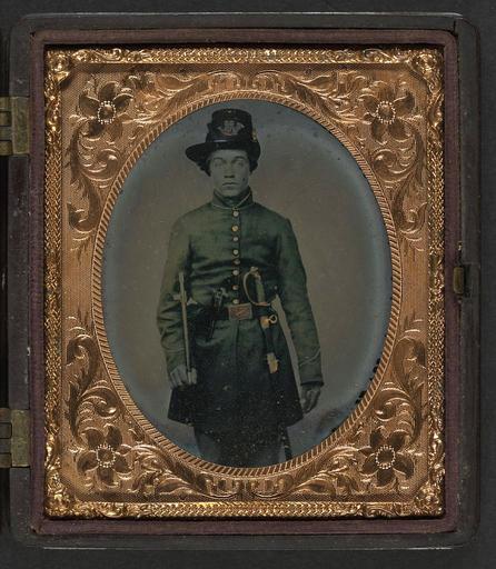 | Keywords: library of congress libraryofcongress dc:identifier=http://hdl.loc.gov/loc.pnp/ppmsca.27251 dc:identifier=httphdllocgovlocpnpppmsca27251 xmlns:dc=http://purl.org/dc/elements/1.1/ xmlns:dc=httppurlorgdcelements11 civil war civilwar us civil war uscivilwar united states unitedstates soldier american american civil war americancivilwar uniform military people photo border round [Unidentified young soldier in Union frock coat and infantry Hardee hat with sword, revolver, and fife] [between 1861 and 1865] 1 photograph : sixth-plate ambrotype, hand-colored ; 9.1 x 8.4 cm (case) Notes: Title devised by Library staff. Case front: Berg, no. 1-55 Case back: Berg, no. 3-107 Gift; Tom Liljenquist; 2010; (DLC/PP-2010:105). Subjects: United States.--Army.--People.--1860-1870. Soldiers--Union--1860-1870. Military uniforms--Union--1860-1870. Daggers & swords--1860-1870. Handguns--1860-1870. Flutes--1860-1870. Musicians--1860-1870. Youth--1860-1870. United States--History--Civil War, 1861-1865--Military personnel--Union. Format: Portrait photographs--1860-1870. Ambrotypes--Hand-colored--1860-1870. Rights Info: No known restrictions on publication. Repository: Library of Congress, Prints and Photographs Division, Washington, D.C. 20540 USA, hdl.loc.gov/loc.pnp/pp.print Part Of: Ambrotype/Tintype filing series (Library of Congress) (DLC) 2010650518 Liljenquist Family collection (Library of Congress) (DLC) 2010650519 More information about this collection is available at hdl.loc.gov/loc.pnp/pp.lilj Persistent URL: hdl.loc.gov/loc.pnp/ppmsca.27251 Call Number: AMB/TIN no. 2388 [Unidentified young soldier in Union frock coat and infantry Hardee hat with sword, revolver, and fife] [between 1861 and 1865] 1 photograph : sixth-plate ambrotype, hand-colored ; 9.1 x 8.4 cm (case) Notes: Title devised by Library staff. Case front: Berg, no. 1-55 Case back: Berg, no. 3-107 Gift; Tom Liljenquist; 2010; (DLC/PP-2010:105). Subjects: United States.--Army.--People.--1860-1870. Soldiers--Union--1860-1870. Military uniforms--Union--1860-1870. Daggers & swords--1860-1870. Handguns--1860-1870. Flutes--1860-1870. Musicians--1860-1870. Youth--1860-1870. United States--History--Civil War, 1861-1865--Military personnel--Union. Format: Portrait photographs--1860-1870. Ambrotypes--Hand-colored--1860-1870. Rights Info: No known restrictions on publication. Repository: Library of Congress, Prints and Photographs Division, Washington, D.C. 20540 USA, hdl.loc.gov/loc.pnp/pp.print Part Of: Ambrotype/Tintype filing series (Library of Congress) (DLC) 2010650518 Liljenquist Family collection (Library of Congress) (DLC) 2010650519 More information about this collection is available at hdl.loc.gov/loc.pnp/pp.lilj Persistent URL: hdl.loc.gov/loc.pnp/ppmsca.27251 Call Number: AMB/TIN no. 2388 |