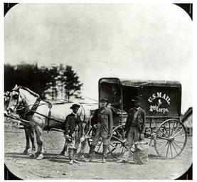 | Keywords: smithsonian institution smithsonianinstitution unionarmy civilwar 2nd corps 2ndcorps usps wagon u.s. mail usmail wagon wheel wagonwheel horses men mailman civil war mail wagon civilwarmailwagon horse postman mail mail carrier mailcarrier carriage group of men groupofmen black and white blackandwhite white horse whitehorse horse and buggy horseandbuggy postal service postalservice horse and carriage horseandcarriage pony express ponyexpress us postal service uspostalservice mailmen horse drawn horsedrawn western photo old mail across the commons mailacrossthecommons national postal museum nationalpostalmuseum vehicle black and white Description: This wagon was used to transport mail for the 2nd Corps of the Union Army during the Civil War. The 2nd Corps was organized on March 13, 1862, and fought its last battle on April 7, 1865. Creator/Photographer: Unidentified photographer Medium: Black and white photographic print Geography: USA Date: 1864 Collection: U.S. Mail Wagons Repository: National Postal Museum Accession number: A.2006-72 Persistent URL: arago.si.edu/index.asp?con=2&cmd=1&id=194324 Description: This wagon was used to transport mail for the 2nd Corps of the Union Army during the Civil War. The 2nd Corps was organized on March 13, 1862, and fought its last battle on April 7, 1865. Creator/Photographer: Unidentified photographer Medium: Black and white photographic print Geography: USA Date: 1864 Collection: U.S. Mail Wagons Repository: National Postal Museum Accession number: A.2006-72 Persistent URL: arago.si.edu/index.asp?con=2&cmd=1&id=194324 |