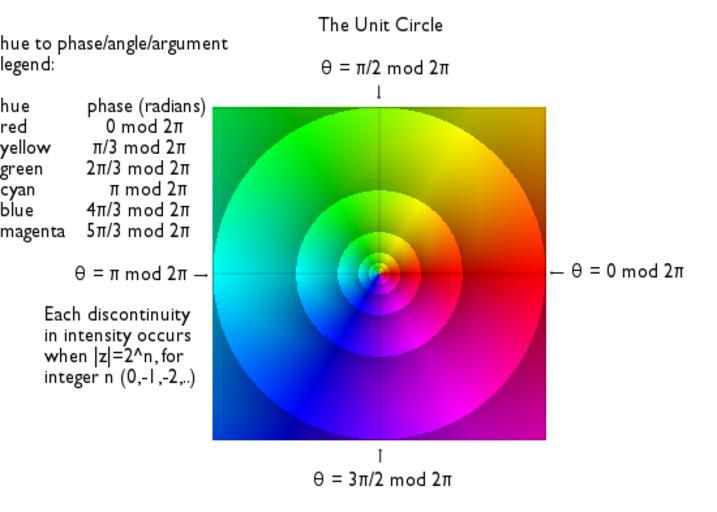 | Keywords: Unit circle domain coloring.png Image was made with Gimp-2 2 and Michael J Gruber's conformal py plugin available here http //www analysis uni-hannover de/~gruber/Computing/Conformal/ Image créée avec Gimp 2 2 associé au greffon de Michael J Gruber's conformal py disponible ici http //www analysis uni-hannover de/~gruber/Computing/Conformal/ en wikipedia Jayantanth CommonsHelper 2007-12-31 Tryptographer wikipedia en Tryptographer Original upload log page en wikipedia Unit_circle_domain_coloring png 2007-12-31 03 58 Tryptographer 550×393× 61775 bytes <nowiki>Owen Maresh Image was made with Gimp-2 2 and Michael J Gruber's conformal py plugin available here http //www-user tu-chemnitz de/~mjg/Computing/Conformal/ image corrects error in the phase of cyan was 2pi mod 2pi should be pi mod 2pi </nowiki> 2006-05-25 02 59 Tryptographer 550×393× 61749 bytes <nowiki>Image was made with Gimp-2 2 and Michael J Gruber's conformal py plugin available here http //www-user tu-chemnitz de/~mjg/Computing/Conformal/</nowiki> Complex plots color maps |