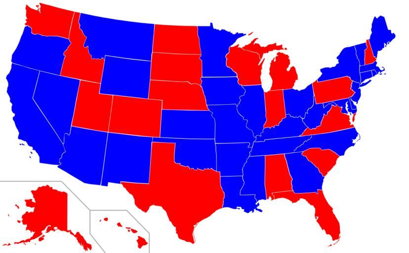 Keywords: United States attorney generals.svg ff0000 Republican Attorney General 0000ff Democratic Attorney General Map of the party affiliations of United States state attorney generals <br />Derived from Image Blank USA w territories svg information from w en State Attorney General territories commented out for lack of information Own 15 56 8 May 2008 UTC Applysense Political maps of the United States |