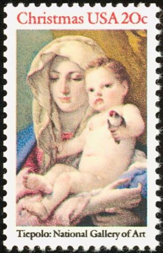 | Keywords: United States Christmas stamp 1982 Madonna of the Goldfinch, Giovanni Battista Tiepolo c. 1760.jpg  en United States Christmas stamp 1982 Madonna of the Goldfinch Giovanni Battista Tiepolo c 1760 Scan of original United States Postal Service Giovanni Battista Tiepolo circa 1760 stamp 1982 Painting is out of copyright rest of stamp too simple for copyright eligibility PD-ineligible PD-Old Giovanni Battista Tiepolo 076 jpg Giovanni Battista Tiepolo - Madonna of the Goldfinch - WGA22360 jpg Stamps of the United States 1981-1990 Giovanni Battista Tiepolo 1982 stamps Carduelis carduelis on stamps Christmas on stamps Paintings on stamps Animals on stamps of the United States |