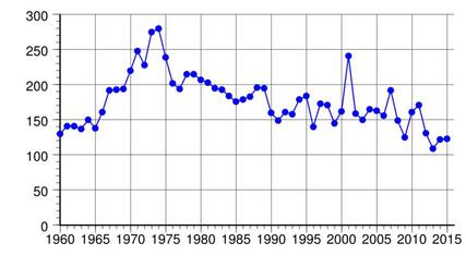 | Keywords: United States Law Enforcement Deaths.svg en United States law enforcement deaths from 1960 to 2015 Data source http //www nleomf org/facts/officer-fatalities-data/year html National Law Enforcement Officers Memorial Fund 2016-02-18 own Delphi234 other versions Generated with Wikimedia SVG Chart SVG Chart/box cc-zero Police of the United States |