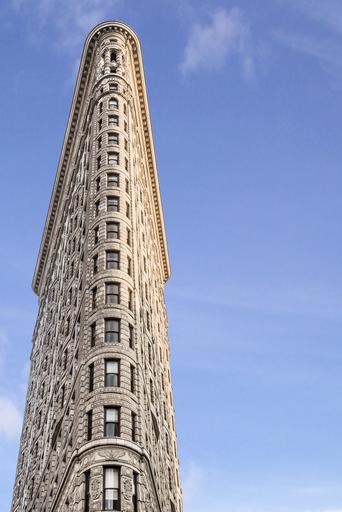 Keywords: united states new york buildings city manhattan flatiron tower sky clouds strait