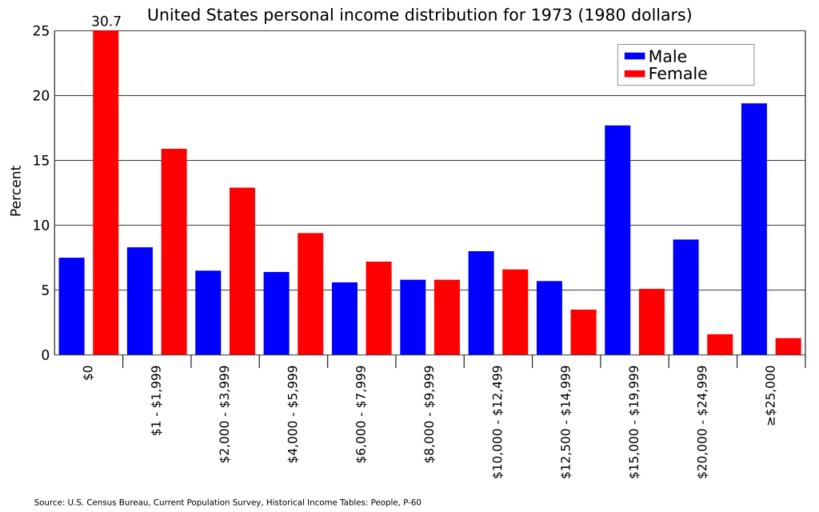 Keywords: United States personal income by sex in 1980 dollars-1973.svg translate yes en Distribution of personal income by sex in the United States in 1973 in 1980 dollars Source U S Census Bureau Current Population Survey Historical Income People https //www2 census gov/prod2/popscan/p60-132 pdf P-60 Table 44 pgs 138-140 2016-05-05 own Delphi234 other versions Note wikitable - 1980 dollars 2014 dollars - 2 000 5 746 - 4 000 11 492 - 6 000 17 238 - 8 000 22 984 - 10 000 28 730 - 12 500 35 913 - 15 000 43 095 - 20 000 57 460 - 25 000 71 825 cc-zero Income distribution in the United States Personal income in the United States |