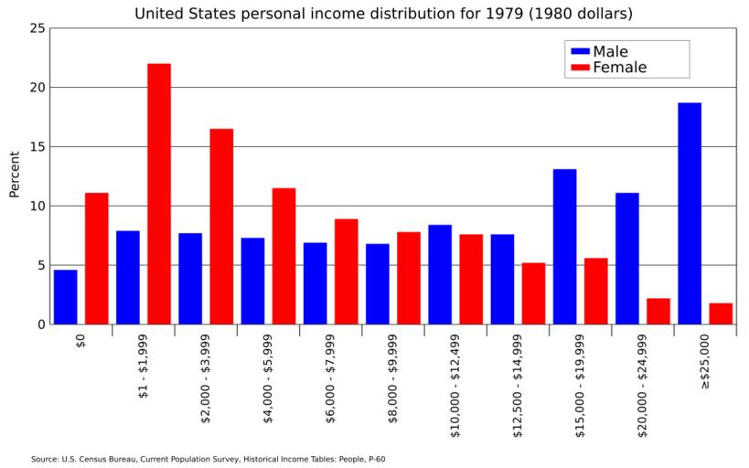 | Keywords: United States personal income by sex in 1980 dollars-1979.svg translate yes en Distribution of personal income by sex in the United States in 1979 in 1980 dollars Source U S Census Bureau Current Population Survey Historical Income People https //www2 census gov/prod2/popscan/p60-132 pdf P-60 Table 44 pgs 138-140 2016-05-05 own Delphi234 other versions Note wikitable - 1980 dollars 2014 dollars - 2 000 5 746 - 4 000 11 492 - 6 000 17 238 - 8 000 22 984 - 10 000 28 730 - 12 500 35 913 - 15 000 43 095 - 20 000 57 460 - 25 000 71 825 cc-zero Income distribution in the United States Personal income in the United States |