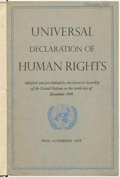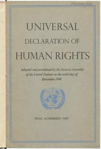 Keywords: history rights human rights humanrights civil rights civilrights law international law internationallaw united nations unitednations universal declaration of human rights universaldeclarationofhumanrights text writing plaque document "All human beings are born free and equal in dignity and rights. They are endowed with reason and conscience and should act towards one another in a spirit of brotherhood." —The Universal Declaration of Human Rights adopted by the United Nations 10 December 1948. ******************** "The Universal Declaration of Human Rights was the result of the experience of the Second World War. With the end of that war, and the creation of the United Nations, the international community vowed never again to allow atrocities like those of that conflict happen again. World leaders decided to complement the UN Charter with a road map to guarantee the rights of every individual everywhere. The document they considered, and which would later become the Universal Declaration of Human Rights, was taken up at the first session of the General Assembly in 1946. [...] The Commission on Human Rights was made up of 18 members from various political, cultural and religious backgrounds. Eleanor Roosevelt, widow of American President Franklin D. Roosevelt, chaired the UDHR drafting committee. [...] By its resolution 217 A (III) of 10 December 1948, the General Assembly, meeting in Paris, adopted the Universal Declaration of Human Rights with eight nations abstaining from the vote but none dissenting. " —United Nations [accessed 11 December 2016] ******************* PREAMBLE "Whereas recognition of the inherent dignity and of the equal and inalienable rights of all members of the human family is the foundation of freedom, justice and peace in the world, Whereas disregard and contempt for human rights have resulted in barbarous acts which have outraged the conscience of mankind, and the advent of a world in which human beings shall enjoy freedom of speech and belief and freedom from fear and want has been proclaimed as the highest aspiration of the common people, Whereas it is essential, if man is not to be compelled to have recourse, as a last resort, to rebellion against tyranny and oppression, that human rights should be protected by the rule of law, Whereas it is essential to promote the development of friendly relations between nations, Whereas the peoples of the United Nations have in the Charter reaffirmed their faith in fundamental human rights, in the dignity and worth of the human person and in the equal rights of men and women and have determined to promote social progress and better standards of life in larger freedom, Whereas Member States have pledged themselves to achieve, in cooperation with the United Nations, the promotion of universal respect for and observance of human rights and fundamental freedoms, Whereas a common understanding of these rights and freedoms is of the greatest importance for the full realization of this pledge, Now, therefore, The General Assembly, Proclaims this Universal Declaration of Human Rights as a common standard of achievement for all peoples and all nations, to the end that every individual and every organ of society, keeping this Declaration constantly in mind, shall strive by teaching and education to promote respect for these rights and freedoms and by progressive measures, national and international, to secure their universal and effective recognition and observance, both among the peoples of Member States themselves and among the peoples of territories under their jurisdiction." **************** ▶ Photo in the public domain. Accessed at website of the British Library. "All human beings are born free and equal in dignity and rights. They are endowed with reason and conscience and should act towards one another in a spirit of brotherhood." —The Universal Declaration of Human Rights adopted by the United Nations 10 December 1948. ******************** "The Universal Declaration of Human Rights was the result of the experience of the Second World War. With the end of that war, and the creation of the United Nations, the international community vowed never again to allow atrocities like those of that conflict happen again. World leaders decided to complement the UN Charter with a road map to guarantee the rights of every individual everywhere. The document they considered, and which would later become the Universal Declaration of Human Rights, was taken up at the first session of the General Assembly in 1946. [...] The Commission on Human Rights was made up of 18 members from various political, cultural and religious backgrounds. Eleanor Roosevelt, widow of American President Franklin D. Roosevelt, chaired the UDHR drafting committee. [...] By its resolution 217 A (III) of 10 December 1948, the General Assembly, meeting in Paris, adopted the Universal Declaration of Human Rights with eight nations abstaining from the vote but none dissenting. " —United Nations [accessed 11 December 2016] ******************* PREAMBLE "Whereas recognition of the inherent dignity and of the equal and inalienable rights of all members of the human family is the foundation of freedom, justice and peace in the world, Whereas disregard and contempt for human rights have resulted in barbarous acts which have outraged the conscience of mankind, and the advent of a world in which human beings shall enjoy freedom of speech and belief and freedom from fear and want has been proclaimed as the highest aspiration of the common people, Whereas it is essential, if man is not to be compelled to have recourse, as a last resort, to rebellion against tyranny and oppression, that human rights should be protected by the rule of law, Whereas it is essential to promote the development of friendly relations between nations, Whereas the peoples of the United Nations have in the Charter reaffirmed their faith in fundamental human rights, in the dignity and worth of
