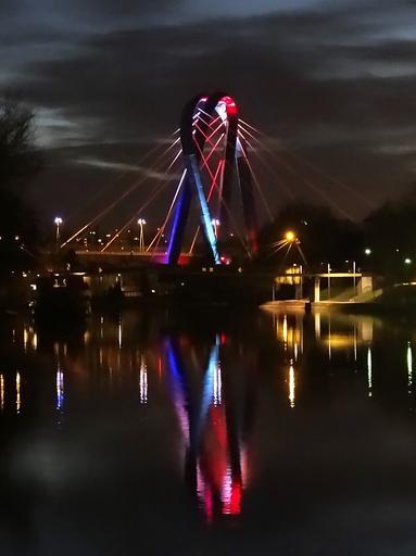 Keywords: university bridge bydgoszcz poland river brda canal crossing structure pylon night