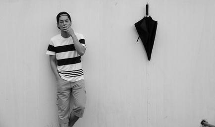 Keywords: university student man smoke umbrella wall black and white