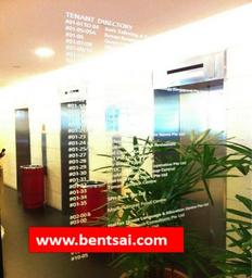 The readability of the information is lowered by the plant; the reflective nature of the mirror; font size and the poor contrast & definition of the white font against the mirror.