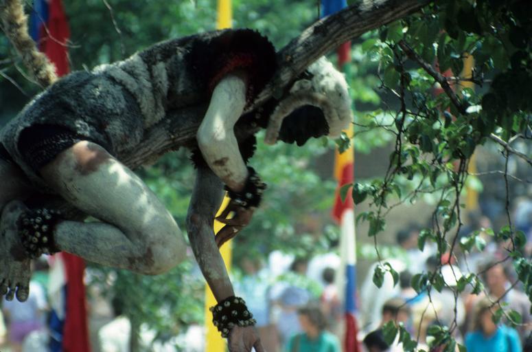 | Keywords: smithsonian institution smithsonianinstitution monkey bahrupiya hunuan monkeygod india folklife festival tree climber treeclimber monket man branch costume paint flags ring animal parade center for folklife and cultural heritage centerforfolklifeandculturalheritage Description: A man dressed as a monkey, or bahrupiya, impersonates the monkey god Hanuman in the India program at the 1985 Festival of American Folklife on the National Mall. Creator/Photographer: Daphne Shuttleworth Medium: Medium unknown Culture: Indian Geography: USA Date: 1985 Repository: Center for Folklife and Cultural Heritage/Ralph Rinzler Folklife Archives and Collections Accession number: FAF1985_Shuttleworth_India_013 Description: A man dressed as a monkey, or bahrupiya, impersonates the monkey god Hanuman in the India program at the 1985 Festival of American Folklife on the National Mall. Creator/Photographer: Daphne Shuttleworth Medium: Medium unknown Culture: Indian Geography: USA Date: 1985 Repository: Center for Folklife and Cultural Heritage/Ralph Rinzler Folklife Archives and Collections Accession number: FAF1985_Shuttleworth_India_013 |