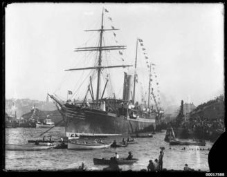 Keywords: boats boat australia boerwar harbor harbour harbourscenes sydney sydneyharbor sydneyharbour war wartime moravian woolloomooloo vintagephotograph blackandwhite monochrome photo border outdoor vehicle black and white Photographer unknown. Sydney, NSW, Australia. Glass plate negative of the vessel MORAVIAN, probably departing for the Boer War from Woolloomooloo. The vessel is seen moored along a wharf with people visible on deck, on land and in the surrounding waters in boats. MORAVIAN is seen from the port side and stern and has one main funnel and three masts with signal flags and also is flying a White Star Line flag. The ANMM undertakes research and accepts public comments that enhance the information we hold about images in our collection. Object no. 00017588 Part of the Peter Britz memorial collection. Photographer unknown. Sydney, NSW, Australia. Glass plate negative of the vessel MORAVIAN, probably departing for the Boer War from Woolloomooloo. The vessel is seen moored along a wharf with people visible on deck, on land and in the surrounding waters in boats. MORAVIAN is seen from the port side and stern and has one main funnel and three masts with signal flags and also is flying a White Star Line flag. The ANMM undertakes research and accepts public comments that enhance the information we hold about images in our collection. Object no. 00017588 Part of the Peter Britz memorial collection.
