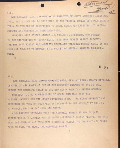 Keywords: doolittle raid doolittleraid united press wire service unitedpresswireservice 1942 world war two worldwartwo text document writing Photo of a document from the 1942 United Press Wire Service Dispatches Special Collection. Repository: San Diego Air and Space Museum Archive Photo of a document from the 1942 United Press Wire Service Dispatches Special Collection. Repository: San Diego Air and Space Museum Archive |