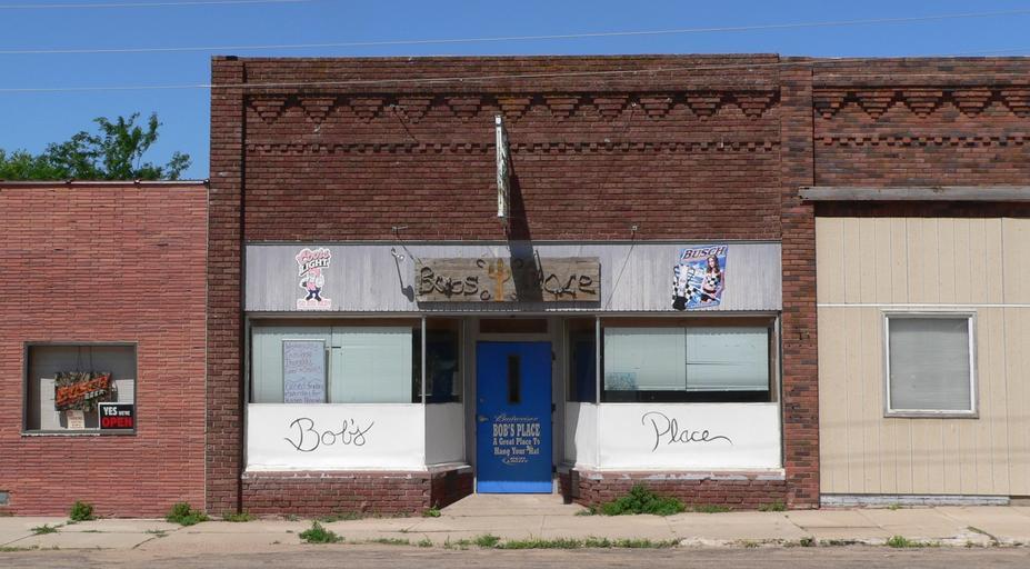 | Keywords: Upland, Nebraska Prairie Ave 2.JPG en Second in a series of seven photos of the west side of Prairie Avenue beginning north of the post office at Prairie and Midland Street and running north to Railway Street <br> This photo shows part of Bob's Place bar own Ammodramus 2010-06-23 Pictures by Ammodramus Taken with Panasonic Lumix DMC-FZ20 Upland Nebraska Bars in Nebraska | ||||