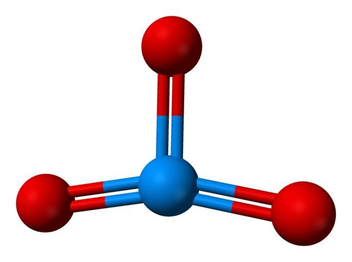 Keywords: Uranium-trioxide-Pyykko-3D-balls-B.png Ball-and-stick model of a uranium trioxide molecule UO<sub>3</sub> based on the structure calculated in cite journal Pyykkö P Li J Quasirelativistic pseudopotential study of species isoelectronic to uranyl and the equatorial coordination of uranyl Journal of Physical Chemistry 1994 98 4809-4813 10 1021/j100069a007 Own 2008-03-07 Ben Mills Benjah-bmm27 Images by Ben Mills Uranium trioxide molecule |