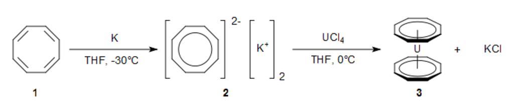 Keywords: Uranocene-synthesis.png en Synthesis of uranocene from 1 3 5 7-cyclooctatetraene 8annulene 2015-01-09 own Cmoarl other versions cc-zero Uploaded with UploadWizard Organic syntheses Uranocene