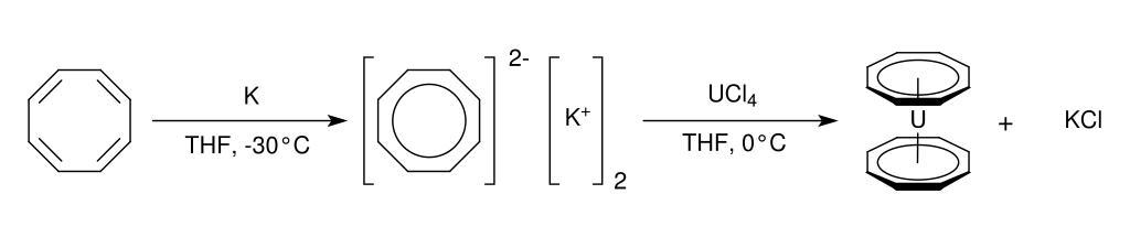 Keywords: Uranocene synthesis.svg en Synthesis of uranocene from 1 3 5 7-cyclooctatetraene 8annulene 2015-01-09 own Cmoarl other versions Uploaded with UploadWizard Uranocene Organic syntheses