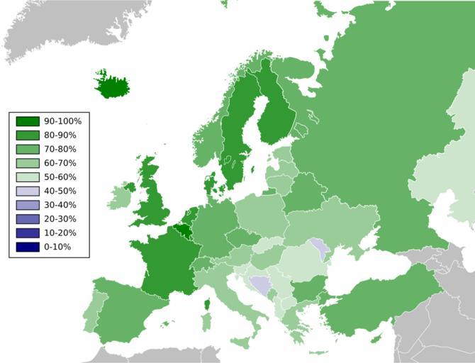 | Keywords: Urbanization Europe 2010.svg Urbanization in Europe 2010 Urbanisierung in Europa 2010 https //www cia gov/cia/publications/factbook/index html CIA - The World Factbook Blank political map Europe in 2006 WF svg 2010 Razorbliss cc-zero Data <pre> Albanien 52 Andorra 88 Belgien 97 Bosnien und Herzegowina 49 Bulgarien 71 Dänemark 87 Deutschland 74 Estland 69 Finnland 85 Frankreich 85 Griechenland 61 Irland 62 Island 93 Italien 68 Kasachstan 59 Kroatien 58 Lettland 68 Liechtenstein 14 Litauen 67 Luxemburg 85 Malta 95 Mazedonien 59 Moldawien 47 Monaco 100 Montenegro 61 Niederlande 83 Norwegen 79 Österreich 68 Polen 61 Portugal 61 Rumänien 57 Russland 73 San Marino 94 Schweden 85 Schweiz 74 Serbien 56 Slowakei 55 Slowenien 50 Spanien 77 Tschechien 73 Türkei 70 Ukraine 69 Ungarn 68 Vatikanstadt 100 Vereinigtes Königreich 80 Weißrussland 75 Zypern 70 </pre> Demographic maps of Europe |