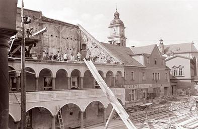 | Keywords: Urejanje Rotovškega trga 1960 (2).jpg Urejanje Rotovškega trga 192212 1960-03-22 creator Jože Gal PD-Slovenia 1960 in Slovenia Historical black and white photographs of Maribor Historical images of Maribor Cathedral Town Hall Square Maribor Construction in Maribor Men at work in Maribor Ladders in Slovenia Arcades in Maribor Photographs by Jože Gal |