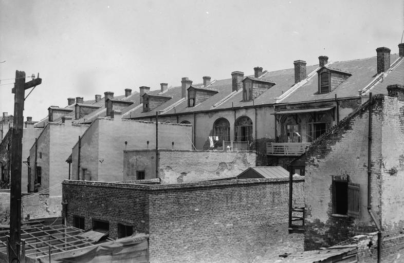 | Keywords: Ursuline Row New Orleans from Back 1936.jpg New Orleans Decatur Street French Quarter June 1936 BUILDINGS ON DECATUR STREET BETWEEN URSULINE GOVENOR NICHOLS NORTHWEST ELEVATION REAR VIEW 2 Marked 'E' on Plot Plan - Ursuline's Row Houses 1107-1133 Decatur Street Commercial Buildings New Orleans Orleans Parish LA Note Row of commercial / residential buildings constructed on land on what had been the Decatur Street side of the Ursuline Convent grounds Historic American Buildings Survey photo by Richard Koch via http //hdl loc gov/loc pnp/hhh la0054/photos 072837p ; TIF cropped contrast slightly adjusted and image converted to jpg before uploading to Wikimedia Commons 1936-06 Richard Koch PD-USGov Unmodified TIF File Decatur Street French Quarter 1936 Ursulines Row Houses Street Scene tif 1936 in New Orleans Built in New Orleans in 1830 Decatur Street French Quarter Black and white photographs of the French Quarter Row houses in New Orleans Black and white photographs of buildings |