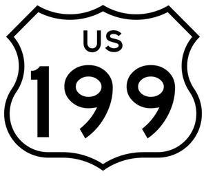 Keywords: US 199 (CA).svg 28 in by 24 in 711 mm by 610 mm California-style U S Route shield made to the specifications of the http //www dot ca gov/hq/traffops/signtech/signdel/specs/G26-2 pdf 2002 edition of Standard Highway Signs with 10 in 250 mm numerals Uses the http //www triskele com/fonts/index html Roadgeek fonts United States law does not permit the copyrighting of typeface designs and the fonts are meant to be copies of a U S Government-produced work anyway own SPUI spuiother Diagrams of California US route shields 199 199 number SVG road signs in California 199 U S Route 199 in California 1961 cutout U S Highway shields 199 Three-digit U S Highway shields 199