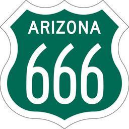 Keywords: US 666 Arizona 1958 South.svg en This image is a representation of a 1950's technicolor U S Route shield used by Arizona Each color meant a different direction Brown meant East Green meant South Orange meant North and Blue meant West Arizona replaced the signs with traditional Black and White shields in the late 50's early 60's 2015-03-23 File US XX Arizona 1954 South svg Matthew Anderson Base template modified from original File US DOT FHWA MUTCD SHS 2004 3-4 M1-4 384x384mm 6 CA svg Template by Spui and Ltljltlj other versions Custom license marker 2015 03 24 Diagrams of colored U S Highway shields in Arizona Uploaded with UploadWizard U S Route 666