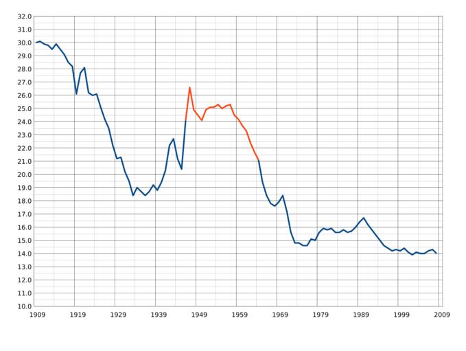 Keywords: US Birth Rates.svg Baby Boomer period own Saiarcot895 2011-07-08 This is based on http //www cdc gov/nchs/data/statab/natfinal2003 annvol1_01 pdf and http //www cdc gov/nchs/data/nvsr/nvsr59/nvsr59_01 pdf and is an SVG version of File U S BirthRate 1909 2003 png Cc-zero Statistics of the United States Birth rate in the United States |