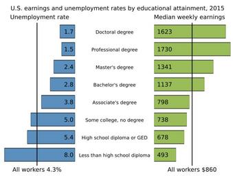 Keywords: US earnings by degree.svg translate yes en United States unemployment and earnings by educational attainment in 2015 Data from http //www bls gov/emp/ep_chart_001 htm BLS 2016-04-07 own Delphi234 other versions current annually cc-zero Economic bar charts Human resources management Income distribution in the United States Educational attainment statistics for the United States |
