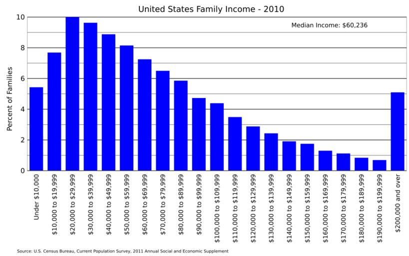 Keywords: US family income 2010.svg en United States family income distribution for 2010 Data from US Census https //www census gov/data/tables/time-series/demo/income-poverty/cps-finc/finc-01 html FINC-01 2016-06-16 own Delphi234 other versions cc-zero Income distribution in the United States |