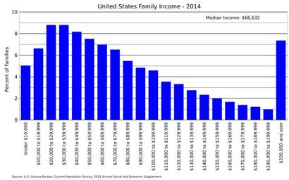 Keywords: US family income 2014.svg en United States family income distribution for 2014 Data from US Census https //www census gov/data/tables/time-series/demo/income-poverty/cps-finc/finc-01 html FINC-01 2016-06-15 own Delphi234 other versions cc-zero Income distribution in the United States |