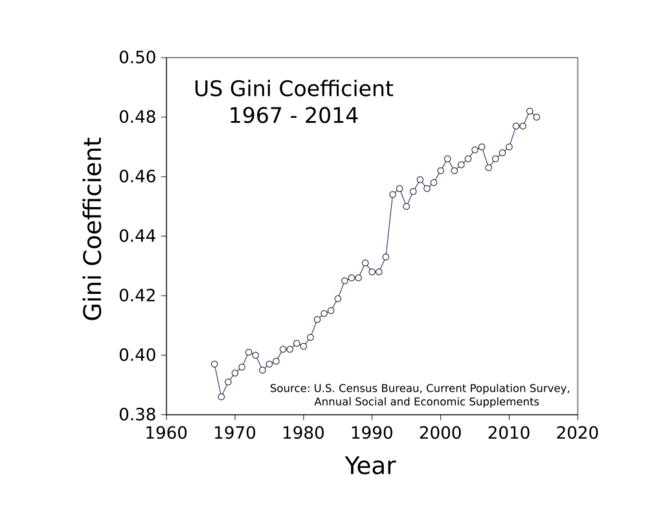 | Keywords: US Gini Coefficient 1967-2014.svg en Line graph of the US Gini coefficient from 1967-2014 created with data from the US Census Bureau 2016-02-15 own DMGualtieri other versions cc-by-sa-4 0 United States Census Bureau Line charts CC-PD-Mark PD US Government |