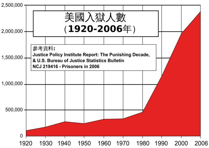 | Keywords: US incarceration timeline-clean-zh-hant.svg Timeline of total number of inmates in U S prisons jails and juvenile facilities From 1920 to 2006 original work 2009-07-28 10 58 UTC 06 34 17 September 2011 UTC US_incarceration_timeline-clean gif derivative work User Apoc2400 <br>US_incarceration_timeline gif November Coalition http //www november org Sentence with November org contact info removed from the bottom of the chart by User Timeshifter <br>derivative work User Sarefo <br>translated by Kuailong Sarefo File US_incarceration_timeline-clean-zh svg Cc-zero Original upload log page en wikipedia File 3AUS_incarceration_timeline-clean-zh-hant svg 2011-09-17 06 38 Kuailong 730×520× 183124 bytes <nowiki>Oops </nowiki> 2011-09-17 06 34 Kuailong 730×520× 181960 bytes <nowiki> Timeline of total number of inmates in U S prisons jails and juvenile facilities From 1920 to 2006 original work 2009-07-28 10 58 UTC ~~~~~ US_incarceration</nowiki> Area charts Correctional population statistics for the United States |