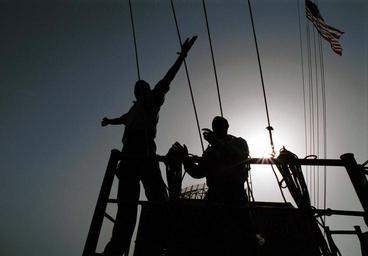 Keywords: US Navy 011012-N-8386S-005 USS Carl Vinson (CVN 70).jpg en Aboard USS Carl Vinson CVN 70 Oct 12 2001 -- U S Navy Signalmen aboard USS Carl Vinson pass phonetic signals to the fast combat support ship USS Sacramento AOE 1 during a vertical replenishment and refueling at sea evolution The Vinson and her carrier airwing are conducting flight operations against terrorist training camps and Taliban military installations in Afghanistan The carefully targeted actions are designed to disrupt the use of Afghanistan as a base for terrorist operations and to attack the military capability of the Taliban regime as part of Operation Enduring Freedom U S Navy Photo by Photgrapher's Mate 3rd Class Jeff Stanislawski RELEASED 2001-10-12 011012-N-8386S-005 Navy http //www navy mil/view_image asp id 1496 U S Navy Photo by Photgrapher's Mate 3rd Class Jeff Stanislawski PD-USGov-Military-Navy Aboard USS Carl Vinson CVN-70 Vertical replenishment War in Afghanistan 2001-present related operations outside of Afghanistan Operation Enduring Freedom in 2001 October 2001 photographs Military people in 2001 People of the United States in 2001 October 2001 in the United States 12 October Military people on duty Male soldiers Men at work Sailors from the United States Navy |