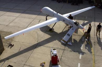 | Keywords: US Navy 011109-F-4884R-004 UAV Predator.jpg en Operation Enduring Freedom Nov 9 2001 -- Members of the 11th Reconnaissance Squadron Indian Springs Nev preform pre-flight checks on the Predator prior to a mission The 11th are deployed to perform maintenance on the aircraft in support of Operation Enduring Freedom U S Air Force photo by Tech Sgt Scott Reed RELEASED 2001-11-09 011109-F-4884R-004 Navy http //www navy mil/view_image asp id 2066 U S Navy photo PD-USGov-Military-Navy Operation Enduring Freedom in 2001 11-09 General Atomics MQ-1 Predator Pre-flight checks US Navy |