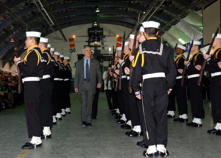 | Keywords: US Navy 020208-N-5576W-005 SECNAV - RTC inspection.jpg en 020208-N-5576W-005 Great Lakes IL Feb 8 2002 -- The Honorable Gordon England Secretary of the Navy inspects the recruit rifle team during the Recruit Pass in Review Ceremony held at Recruit Training Command Great Lakes IL Secretary England presided over the ceremony which is conducted as a formal military graduation and marks the completion of nine weeks of Navy basic training All enlisted Sailors more than 55 000 each year start their Navy careers at the Recruit Training Command at Great Lakes the Navy's only basic training facility At the Recruit Pass in Review Secretary England reviewed the Sailors in formation presented awards to the top graduates and delivered the keynote address U S Navy photo by Photographer's Mate 1st Class Michael Worner RELEASED 2002-02-08 020208-N-5576W-005 Navy http //www navy mil/view_image asp id 796 U S Navy photo by Photographer's Mate 1st Class Michael Worner PD-USGov-Military-Navy February 2002 in Illinois February 2002 photographs 8 February Gordon R England Group photographs of military people Male soldiers Men at work in the United States Naval Station Great Lakes Military people in 2002 Sailor caps of the United States Navy Sailor suits Military people on duty Personality rights |
