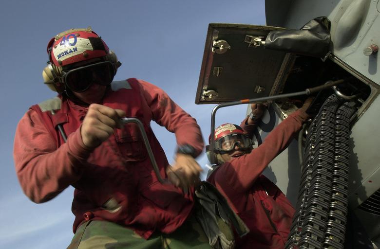 | Keywords: US Navy 020302-N-2383B-514 Ordnancemen load ammunition into F-A-18.jpg en 020302-N-2383B-514 At sea aboard USS Theodore Roosevelt CVN 71 Mar 2 2002 -- Aviation Ordnancemen use a Linkless Ammunition Loader System LALS for loading ammunition into an M61-A1 Vulcan machine gun on an F/A-18 Hornet strike fighter Theodore Roosevelt and her embarked air wing are conducting the final day of flight operations in support of Operation Enduring Freedom U S Navy photo by Chief Photographer's Mate Johnny Bivera RELEASED 2002-03-02 020302-N-2383B-514 Navy http //www navy mil/view_image asp id 934 U S Navy photo by Chief Photographer's Mate Johnny Bivera PD-USGov-Military-Navy Aboard USS Theodore Roosevelt CVN-71 F/A-18 Hornet on flight decks March 2002 photographs |