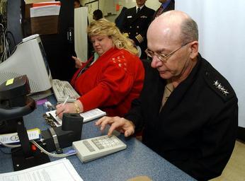 Keywords: US Navy 020311-N-0000X-001 CNO replaces ID with CAC.jpg en At the Pentagon Washington D C Mar 11 2002 -- Admiral Vern Clark Chief of Naval Operations took time out from his busy schedule to replace his green military identification card ID with the new improved Geneva Convention Common Access Card CAC As the new military ID Card the CAC serves as the principal card used to enable physical access to buildings and controlled spaces U S Navy photo RELEASED 2002-03-11 020311-N-0000X-001 Navy http //www navy mil/view_image asp id 994 U S Navy photo PD-USGov-Military-Navy Interior of The Pentagon Vern Clark March 2002 photographs |