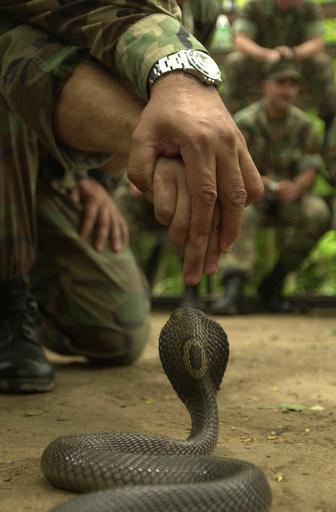 | Keywords: US Navy 020517-N-4309A-005 Thai Military - Jungle Survival Training.jpg en Ban Chan Khrem Thailand May 17 2002 -- Marines assigned to Battalion Landing Team 3rd Battalion 5th Marine Regiment BLT 3/5 the ground combat element of the 31st Marine Expeditionary Unit MEU Special Operations Capable SOC based in Okinawa Japan participates in jungle survival training with the help from a local Thai military instructor during Exercise Cobra Gold 2002 Cobra Gold 2002 is the 21st U S Pacific Command exercise conducted in Thailand demonstrating the ability of U S Forces to deploy rapidly and conduct joint-combined operations with the Thai and Singapore armed forces U S Navy photo by Photographer s Mate 2nd Class Aaron Ansarov RELEASED 2002-05-17 020517-N-4309A-005 JPG Navy http //www navy mil/view_image asp id 1571 U S Navy photo by Photographer s Mate 2nd Class Aaron Ansarov PD-USGov-Military-Navy Images from US Navy location Ban Chan Khrem Thailand Cobra Gold 2002 May 2002 photographs Unidentified Elapidae |
