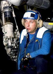 | Keywords: US Navy 020829-N-1350S-003 Aviation Boatswain's Mate monitors the movement of aircraft in the limited space in the ship^rsquo,s hangar bay.jpg en At sea aboard USS Harry S Truman CVN 75 Aug 29 2002 -- Aviation Boatswain's Mate Airman Jeff Wilson from Dover Del monitors the movement of aircraft in the limited space in the ship s hangar bay Crewmembers use whistles to alert personnel maneuvering aircraft when there is a potential for collision with other parked aircraft The Truman is participating in Tailored Ship's Training Availability TSTA III the last training phase before the carrier's final pre-deployment evaluation U S Navy Photo by Photographer's Mate Airman Derrick Michael Snyder RELEASED 2002-08-29 020829-N-1350S-003 Navy http //www navy mil/view_image asp id 2577 U S Navy Photo by Photographer's Mate Airman Derrick Michael Snyder PD-USGov-Military-Navy August 2002 photographs 29 August Aboard USS Harry S Truman CVN-75 August 2002 in the United States Aviation Boatswain's Mates Military people in 2002 Men facing left and looking left Personality rights |