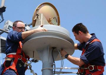 Keywords: US Navy 021107-N-4374S-019 SITE TV antenna maintenance aboard USS Nassau.jpg en At sea aboard USS Nassau LHA 4 Nov 7 2002 -- Interior Communications Electrician 1st Class Eric Stombaugh left and Interior Communications Electrician 2nd Class Don Pierce right conduct maintenance on the shipboard information training and entertainment SITE system antenna SITE provides crewmembers with important training news and information while deployed at sea Nassau is home ported in Norfolk Va and is on a regularly scheduled six-month deployment in the Central Command area of responsibility conducting missions in support of Operation Enduring Freedom U S Navy Photograph by Photographer s Mate 2nd Class Michael Sandberg RELEASED 2002-11-07 021107-N-4374S-019 Navy http //www navy mil/view_image asp id 3273 U S Navy photo PD-USGov-Military-Navy Aboard USS Nassau LHA-4 Interior Communications Electrician |