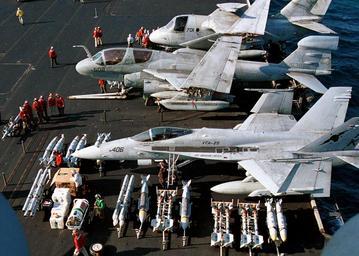 Keywords: US Navy 021114-N-4748O-001 Aviation Ordnancemen prepare to load aircraft with various ordnance on the ship's flight deck in preparation for upcoming combat missions.jpg en At sea aboard USS Abraham Lincoln CVN 72 Nov 14 2002 -- Aviation Ordnancemen prepare to load aircraft with various ordnance on the ship's flight deck in preparation for upcoming combat missions Abraham Lincoln and her embarked Carrier Air Wing Fourteen CVW-14 on a regularly scheduled six-month deployment and are conducting combat missions in support of Operation Enduring Freedom and Operation Southern Watch U S Navy photo by Photographer's Mate Airman Geanine I Ortez RELEASED 2002-11-14 021114-N-4748O-001 Navy http //www navy mil/view_image asp id 3409 U S Navy photo by Photographer's Mate Airman Geanine I Ortez PD-USGov-Military-Navy Aboard USS Abraham Lincoln CVN-72 Aviation Ordnanceman |