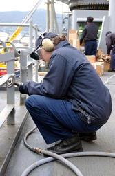 | Keywords: US Navy 021127-N-7217H-002 At sea aboard USS Harpers Ferry (LSD 49)At sea aboard USS Harpers Ferry (LSD 49).jpg en At sea aboard USS Harpers Ferry LSD 49 Nov 27 2002 -- Seaman Rose Barbour assigned to the amphibious dock landing ship s deck department uses a pneumatic sander to prepare metal framing for painting preservation Harpers Ferry is forward deployed to Fleet Activities Sasebo Japan with a primary mission to transport and launch Navy Landing Craft Air Cushion LCAC vessels as well as other amphibious craft vehicles crews and U S Marines involved in amphibious operations The ship also has the capability to act as a primary command and control ship during an amphibious assault U S Navy photo by Photographer s Mate 1st Class Marvin Harris RELEASED 2002-11-27 021127-N-7217H-002 Navy http //www navy mil/view_image asp id 3486 U S Navy photo by Photographer s Mate 1st Class Marvin Harris PD-USGov-Military-Navy Aboard USS Harpers Ferry LSD-49 |