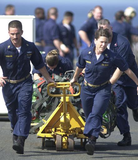 | Keywords: US Navy 021218-N-3443B-010 Sailors aboard the amphibious command ship work overtime to move over 100 pallets of supplies.jpg en At sea aboard USS Mount Whitney LCC/JCC 20 Dec 18 2002 -- Sailors aboard the amphibious command ship work overtime to move over 100 pallets of supplies that they received during a vertical replenishment VERTREP in the Gulf of Aden The ship is in the Horn of Africa region participating in the continuing war on Terrorism U S Navy photo by Chief Journalist Robert Benson RELEASED 2002-12-18 021218-N-3443B-010 Navy http //www navy mil/view_image asp id 3780 U S Navy photo by Chief Journalist Robert Benson PD-USGov-Military-Navy Aboard USS Mount Whitney LCC-20 Vertical replenishment |