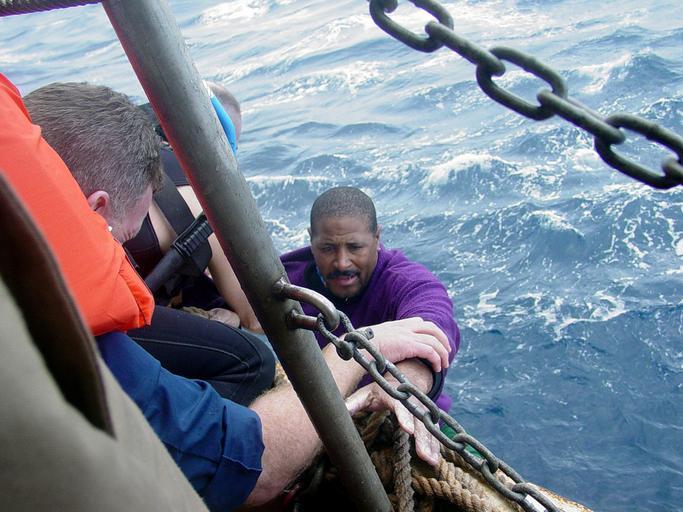 Keywords: US Navy 030108-N-2338M-003 Sailors aboard the U.S. Navy hospital ship USNS Comfort (T-AH 20) rescue a fisherman after his vessel sank the night before.jpg en The Atlantic Ocean Jan 8 2003 -- Sailors aboard the U S Navy hospital ship USNS Comfort T-AH 20 rescue a fisherman after his vessel sank the night before in rough seas near Bermuda The call for Comfort s assistance came from the U S Coast Guard after they received a distress-call from the fishing vessel at approximately 7 p m yesterday shortly before it capsized Rescued was Mr Robert Lambe 35 one of the three Bermuda citizens believed to be on the fishing vessel when it sank The whereabouts of the two other fishermen are still unknown Lambe is being treated aboard Comfort for minor hypothermia and is in good condition according to physicians aboard the ship Comfort is operated by the Navy's Military Sealift Command and recently deployed as part of the ongoing military build-up in the U S Central Command s area of responsibility U S Navy photo by Journalist 2nd Class J Maurer RELEASED 2003-01-08 030108-N-2338M-003 Navy http //www navy mil/view_image asp id 3962 U S Navy photo by Journalist 2nd Class J Maurer PD-USGov-Military-Navy Aboard USNS Comfort T-AH-20 Maritime emergencies Fishermen January 2003 photographs |
