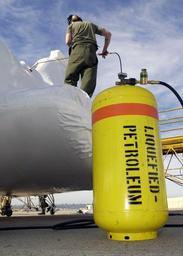 | Keywords: US Navy 030115-N-8590B-042 Sgt. Peter Dimartino from Marine Medium Helicopter Squadron Three Six Four (HMM-364) applies.jpg en Naval Air Station North Island Calif Jan 15 2003 Sgt Peter Dimartino from Marine Medium Helicopter Squadron Three Six Four HMM-364 applies shrink wrap to one of the squadrons CH-46E Sea Knights Squadron helicopters are being prepared for shipment via the Military Sealift Command MSC to an undisclosed destination The sealing process helps prevent corrosion during periods in saltwater environments U S Navy photo by Photographer s Mate Airman Andrew Betting RELEASED 2003-01-15 030115-N-8590B-042 Navy http //www navy mil/view_image asp id 4069 U S Navy photo by Photographer s Mate Airman Andrew Betting PD-USGov-Military-Navy Naval Air Station North Island in the 2000s Shrink wrap CH-46 US Marine Corps Liquefied petroleum gas cylinders Marine Medium Helicopter Squadron 364 Blow torches |