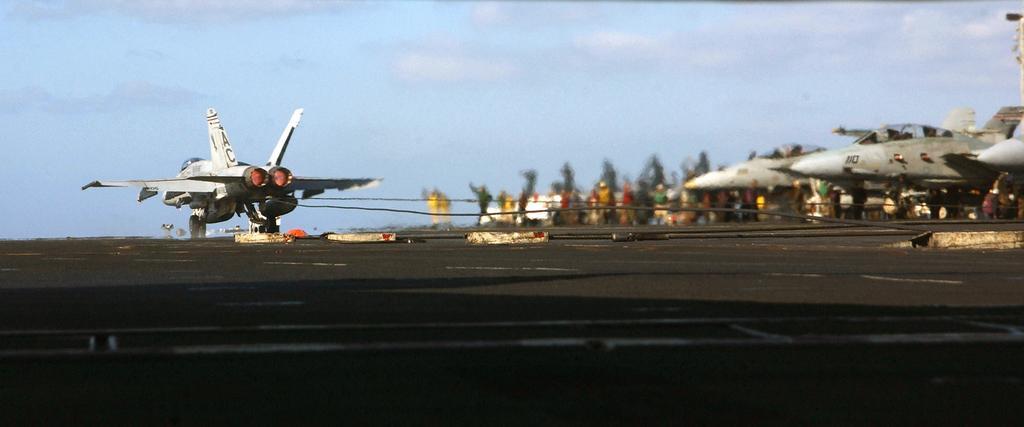 | Keywords: US Navy 030115-N-9964S-043 An F-A-18 ^ldquo,Hornet^rdquo, assigned to the ^ldquo,Silver Eagles^rdquo, of Marine Fighter Attack Squadron One One Five (VMFA-115) makes an arrested landing.jpg en At sea aboard USS Harry S Truman CVN 75 Jan 15 2003 -- An F/A-18 Hornet assigned to the Silver Eagles of Marine Fighter Attack Squadron One One Five VMFA-115 makes an arrested landing snagging one of four cables designed to bring the aircraft to safe and controlled stop aboard ship Harry S Truman and Carrier Air Wing Three CVW-3 are currently on a regularly scheduled deployment conducting missions in support of Operation Enduring Freedom U S Navy photo by Photographer s Mate 3rd Class Christopher B Stoltz RELEASED 2003-01-15 030115-N-9964S-043 Navy http //www navy mil/view_image asp id 4141 U S Navy photo by Photographer s Mate 3rd Class Christopher B Stoltz PD-USGov-Military-Navy Aboard USS Harry S Truman CVN-75 |