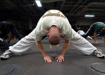 | Keywords: US Navy 030305-N-4048T-018 Sailors aboard the amphibious assault ship USS Kearsarge (LHD 3) participate in Tae Kwon Do classes in the Lower Vehicle Stowage area.jpg en At sea aboard USS Kearsarge LHD 3 Mar 5 2003 - Sailors aboard the amphibious assault ship USS Kearsarge LHD 3 participate in Tae Kwon Do classes in the Lower Vehicle Stowage area Kearsage is currently deployed in support of Operation Enduring Freedom OEF U S Navy photo by Photographer s Mate 2nd Class Alicia Tasz RELEASED 2003-03-05 030305-N-4048T-018 Navy http //www navy mil/view_image asp id 12623 U S Navy photo by Photographer s Mate 2nd Class Alicia Tasz PD-USGov-Military-Navy Aboard USS Kearsarge LHD-3 |